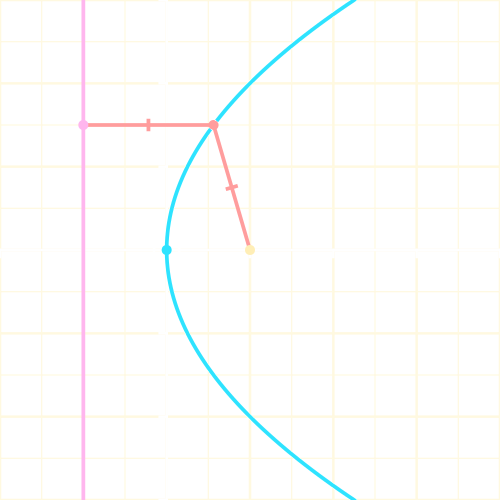 Open mirrored curves whose points are the same distance between a common internal point and an exterenal line.