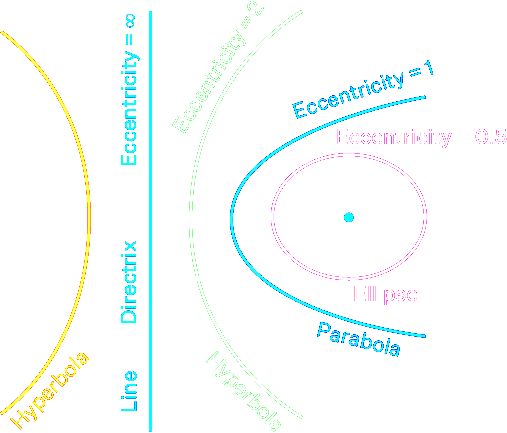 $$\text{eccentricity}=\frac{\text{distance from any point to the focus}}{\text{distance from any point to the directrix}}$$