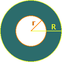 A ring formed by two concentric circles in which all features of circles apply with respect to differences involving two radii
