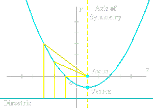 A Directrix is a fixed line perpendicular to the (major) axis of a function, which is determined by its focus and curvature