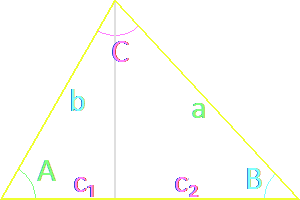 $$c_2=b·\cos(A)\qquad c_1=a·cos(B)$$