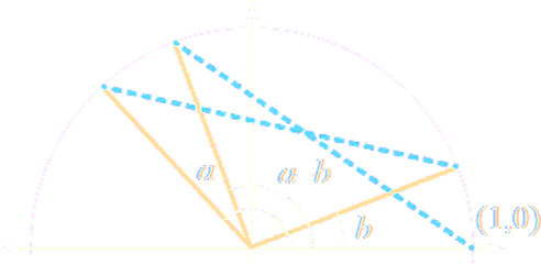 unit circle, plot points for $(1,0)$, and for the angles $b$, $a-b$, and $a$ respectively in a positive rotation