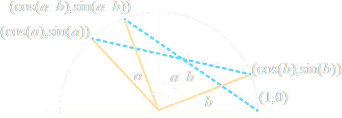 $$\cos(a-b)=\cos(a)·\cos(b)+\sin(a)·\sin(b)$$