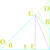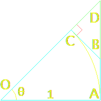$$\land \medspace |AD|=|OA|\cdot\tan(\theta)=\tan(\theta)$$